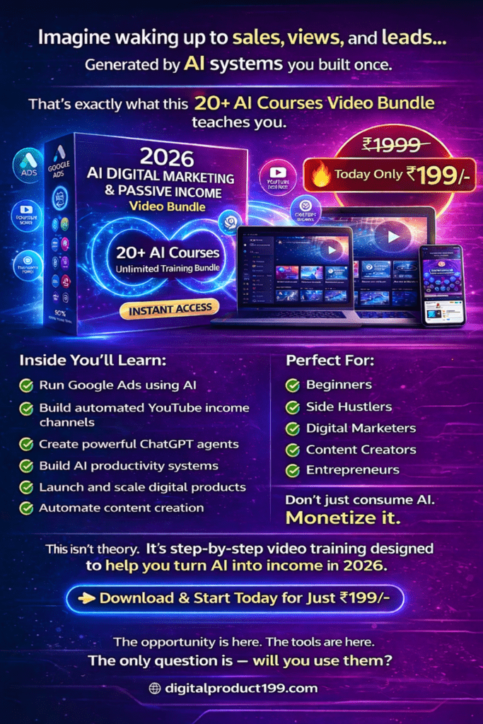 Get Complete AI Bundle Now @ ₹199 ⚡ Regular Price ₹1,999 Today Only ₹199 ⚡ Instant Access After Payment
